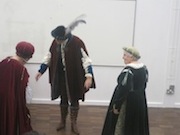 I even got a touch of sunburn. So imagine the British grit it took for Val Webster & Co to be dressed in full medieval regalia – see pics – for their fab presentation on women in the 15th century. They danced dressed like this! It was terrific but I have no idea how they managed it. I roasted just watching.